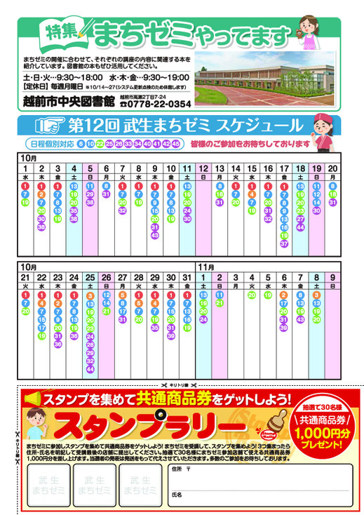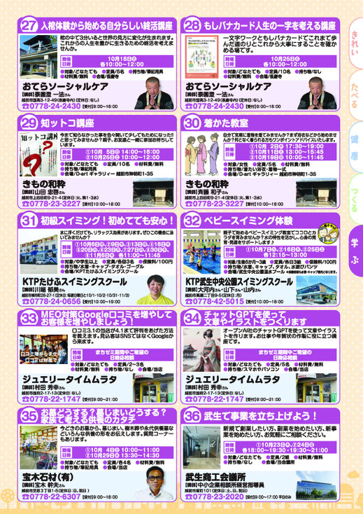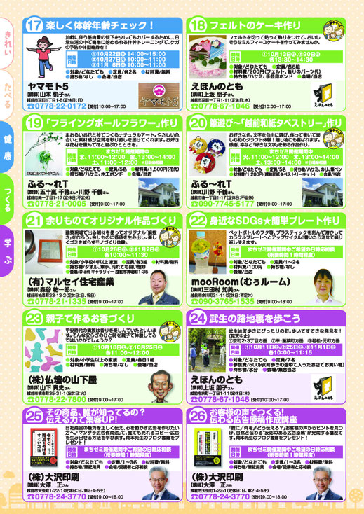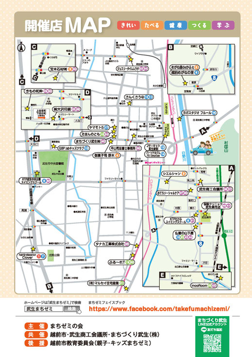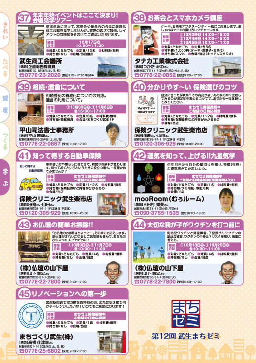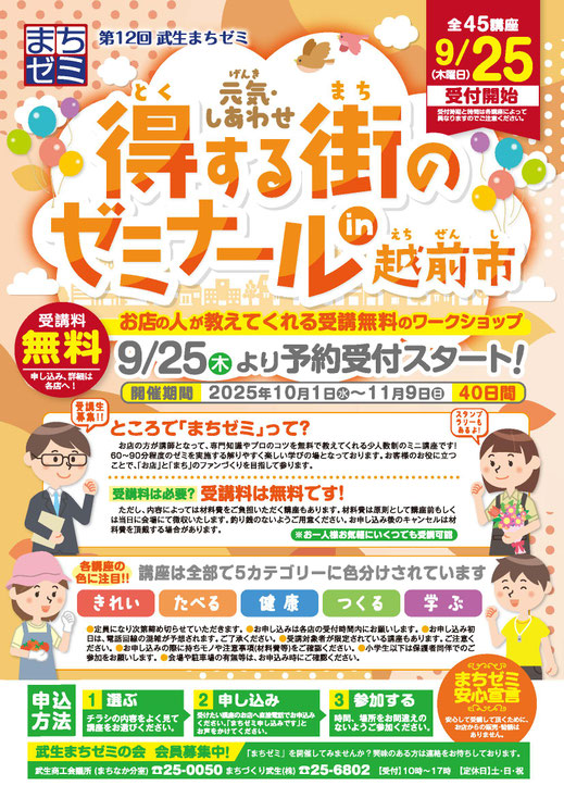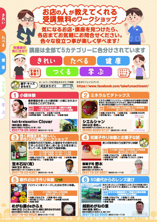 主催:武生まちゼミの会 共催:越前市・武生商工会議所・まちづくり武生㈱ 後援:越前市教育委員会(親子・キッズまちゼミ)